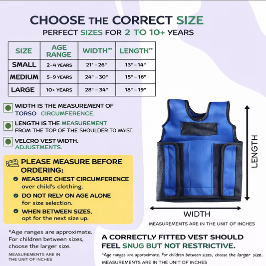 Blue Weighted Adjustable Compression Vest-Deep Pressure for Children age 2-10+
