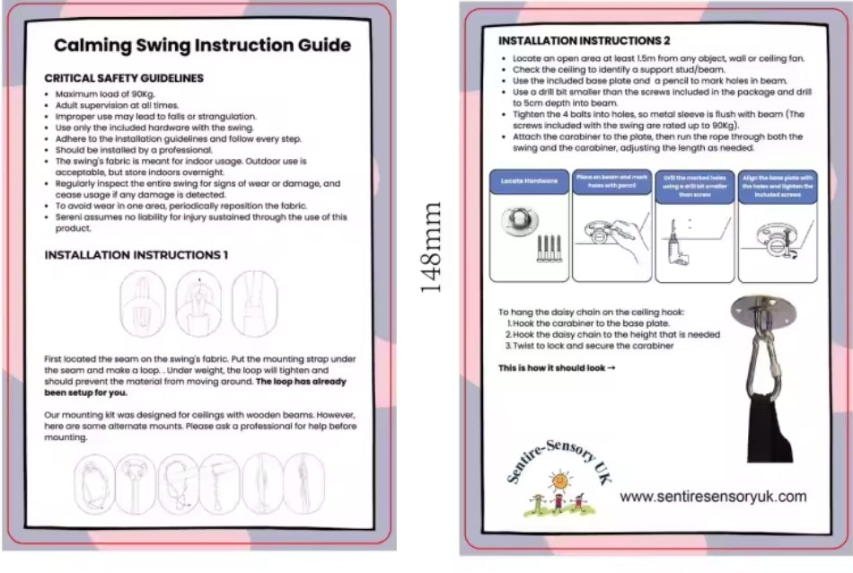 Quick & Easy Setup: Install indoors or outdoors in under 5 minutes — in a bedroom, sensory room, porch, or swing set. Includes mounting hardware (plate, 4 screws, and carabiner).