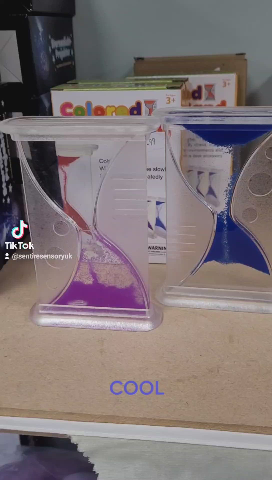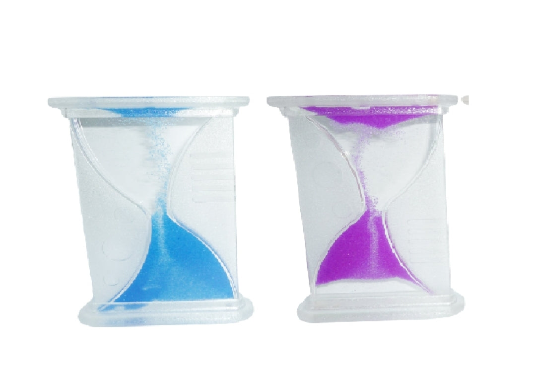 Purple and blue Liquid timers that defies all logic. Unlike the standard liquid timer we all enjoy the coloured, minuscule beads start at the bottom of the tube and work their way up