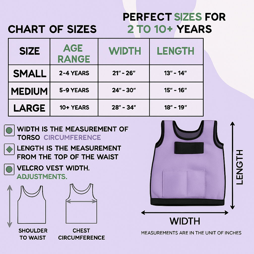 Measure for the best fit, adjust for comfort, and watch your child settle into calm with the vest that feels just like a hug.